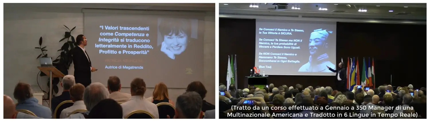 Tradotto in tempo reale in 6 lingue simultanee, mentre ho formato Leader e Manager internazionali.